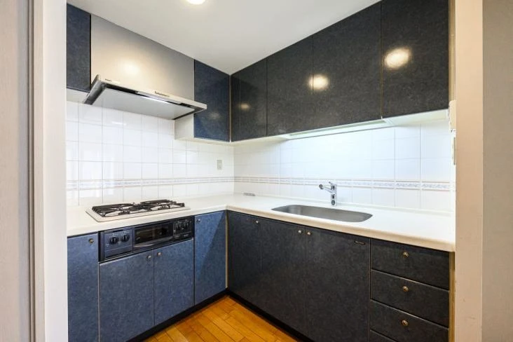 ●作業効率に優れたL型キッチンを採用。調理スペースを広く確保し、動線もスムーズ。