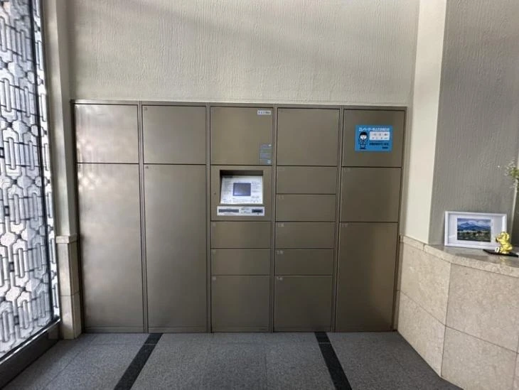 共用部には、留守時に荷物をお預かりできる宅配ロッカーが導入されています。オートロック機能付きのセキュリティも備わっているため、防犯面でも安心です。