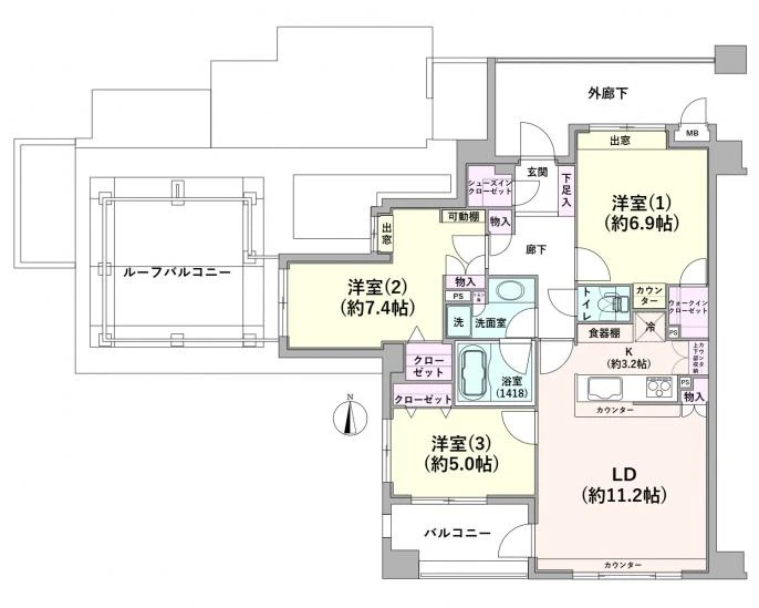 | 専有面積 | 77.42㎡ (壁芯) |